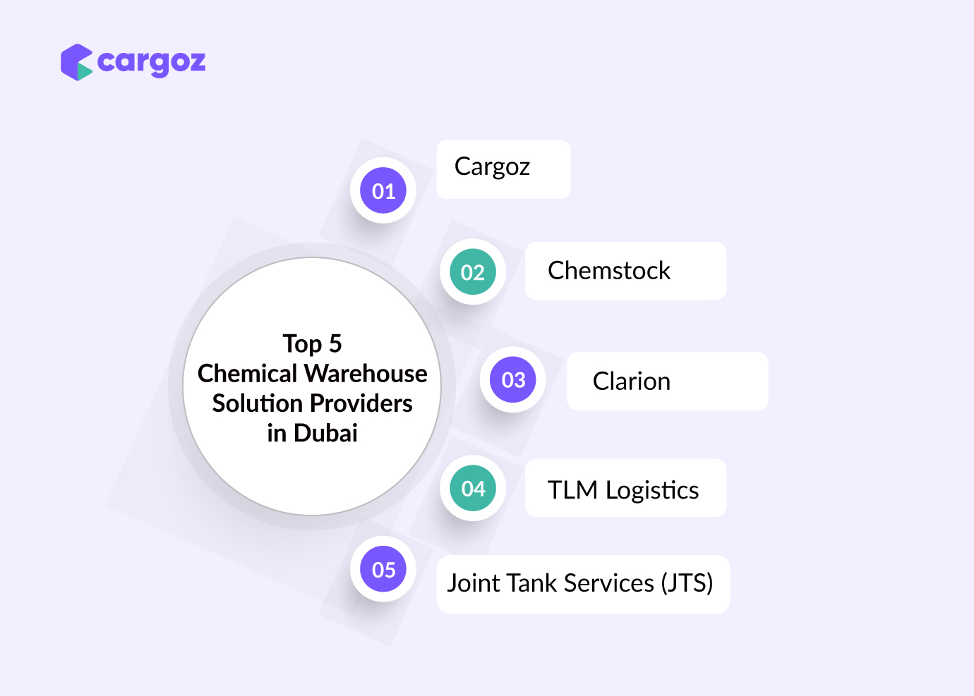 ● The top chemical storage solution providers include Cargoz, Chemstock, Clarion, TLM Logistics, and Joint Tank Services (JTS).